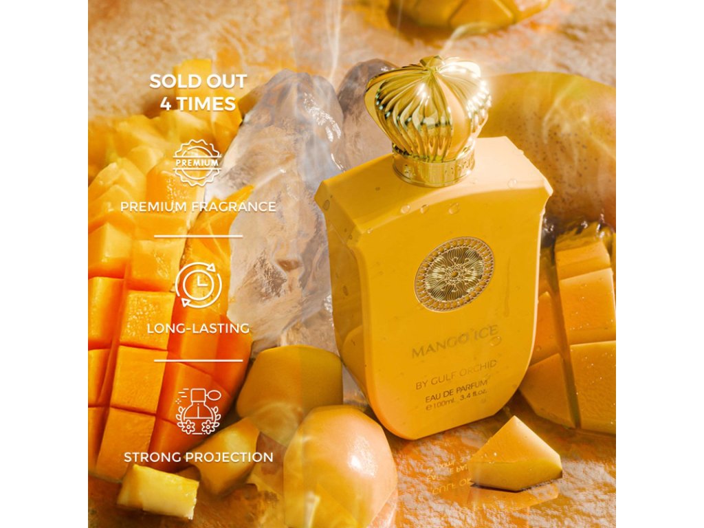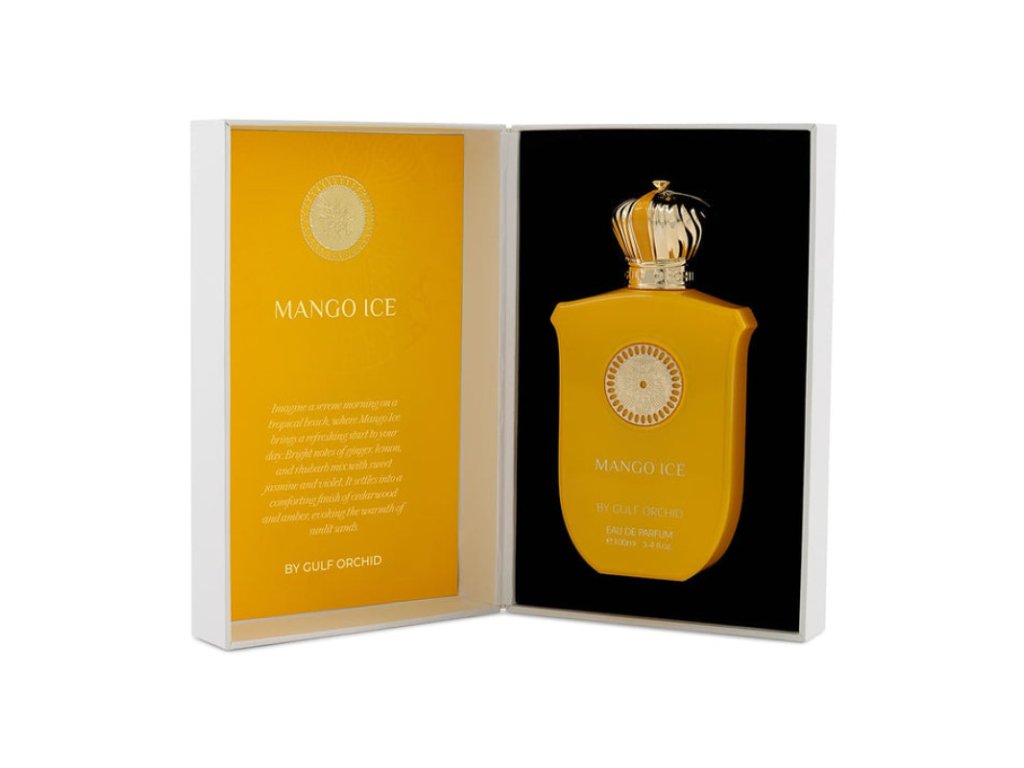 Mango Ice od značky Gulf Orchid se otevírá výrazně svěžím akordem zázvoru, manga, citronu a rebarbory. Úvod je šťavnatý, jiskřivý a okamžitě navozuje letní atmosféru. V srdci se rozvíjejí bílé květy doplněné ambrou a lékořicí, které vůni dodávají hloubku a lehce exotický charakter, aniž by ztratila svou svěžest. Základ tvoří pižmo, karamel, oříškové tóny a vanilka – krémový, hřejivý závěr, který na pokožce působí měkce a příjemně.