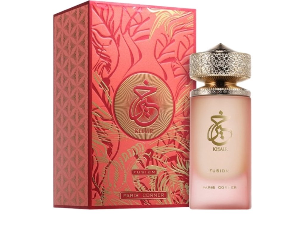 Khair Fusion od značky Paris Corner se otevírá živou kombinací liči, černého rybízu, červeného jablka a italského citronu. Úvod je svěží, jiskřivý a šťavnatý, s hravým, ale kultivovaným tónem. V srdci se rozvíjí maceška, taifská růže a jasmín sambac, které vůni dodávají květinovou bohatost a romantickou eleganci. Základ tvoří vanilka, pižmo, cedr a santalové dřevo – teplý, krémový a dlouhotrvající závěr s jemnou smyslností.
